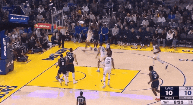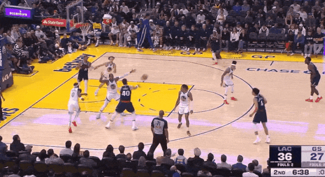 很快,比尔就拿到了快船生涯的首分,是罚球线食糊位(粤语,意思得心应手十拿九稳)急停干拔中投。